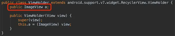 噢,这是定义了一个ImageView,接着到 onBindViewHolder 处的两个 a(((xxx) this.c.xxx: