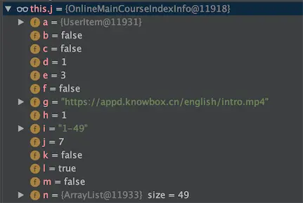 定位到OnlineMainCourseIndexInfo类: