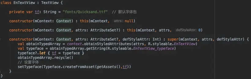 接着EnTextView继承TextView,获取属性,设置字体: