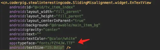 我们都知道可以调用TextView的setTypeface设置字体,如果一个APP用到了多个字体包,每次都去设置显得有些繁琐,这个APP直接重写TextView,直接XML引用,方便多了,笔者在原先基础上做点小改动,有默认字体,可在XML中单独设置字体,attrs.xml中添加属性一枚: