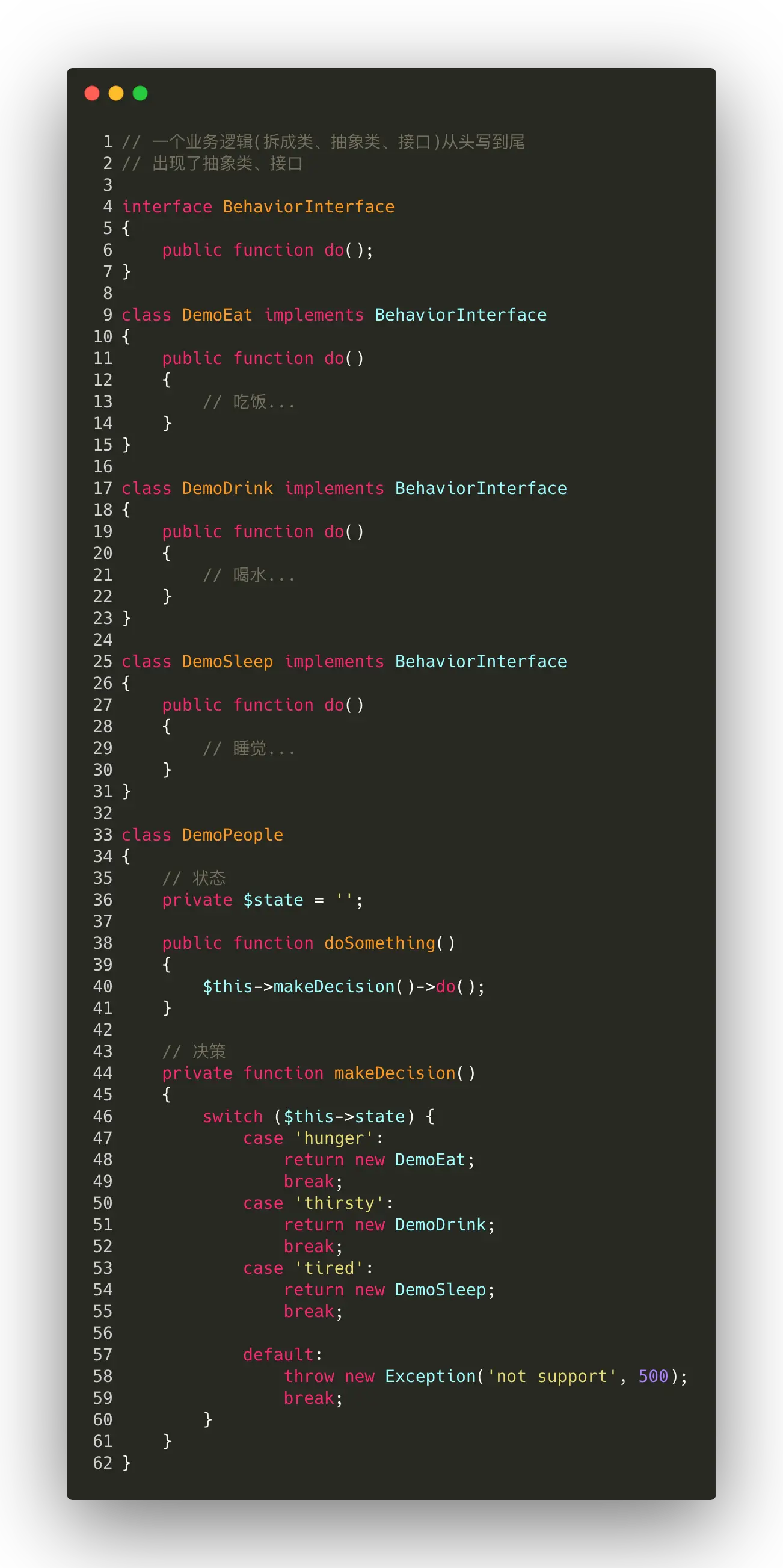 一个业务逻辑(拆成类、抽象类、接口)从头写到尾: