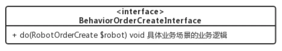 结果:上面的场景,我们只简单定义了订单创建的接BehaviorOrderCreateInterface。由于订单创建过程可能出现异常回滚,我们就需要再定义一个订单创建回滚的接口