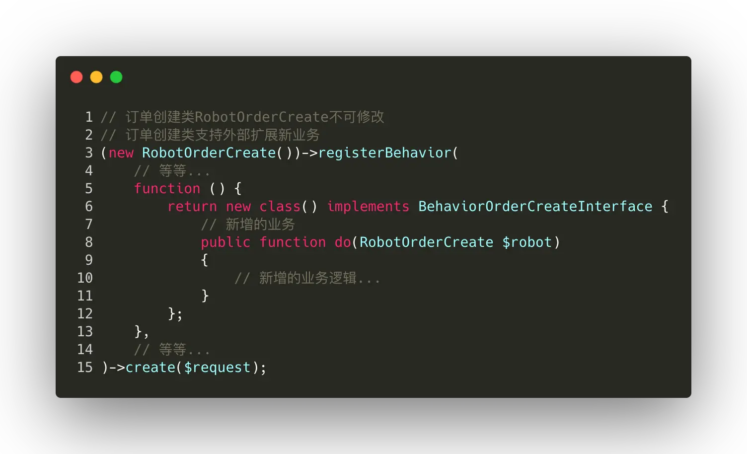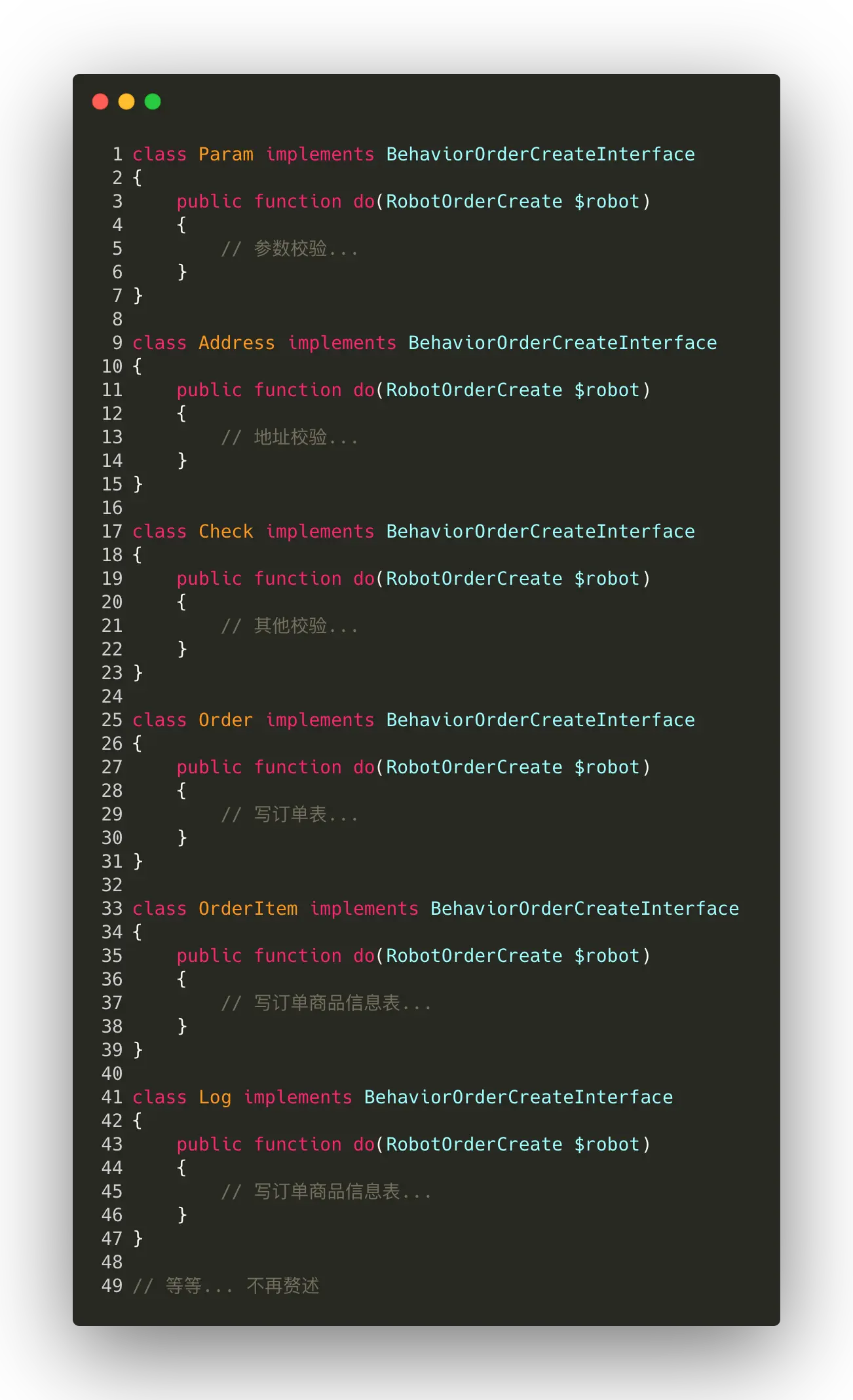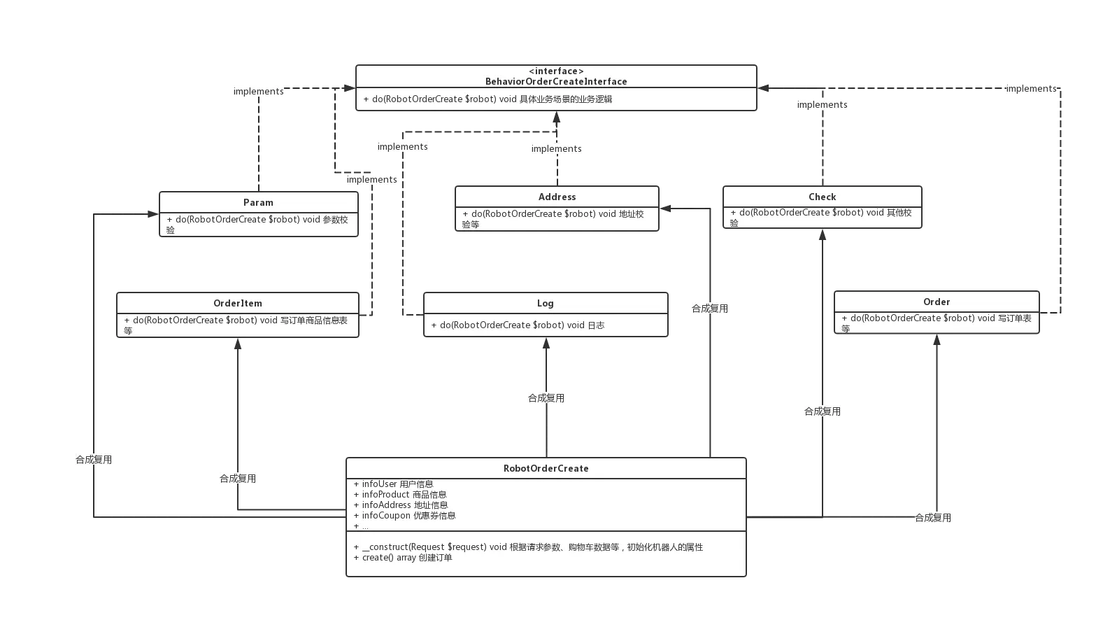 结果:创建订单的逻辑从依赖具体的业务转变为依赖于抽象接口BehaviorOrderCreateInterface