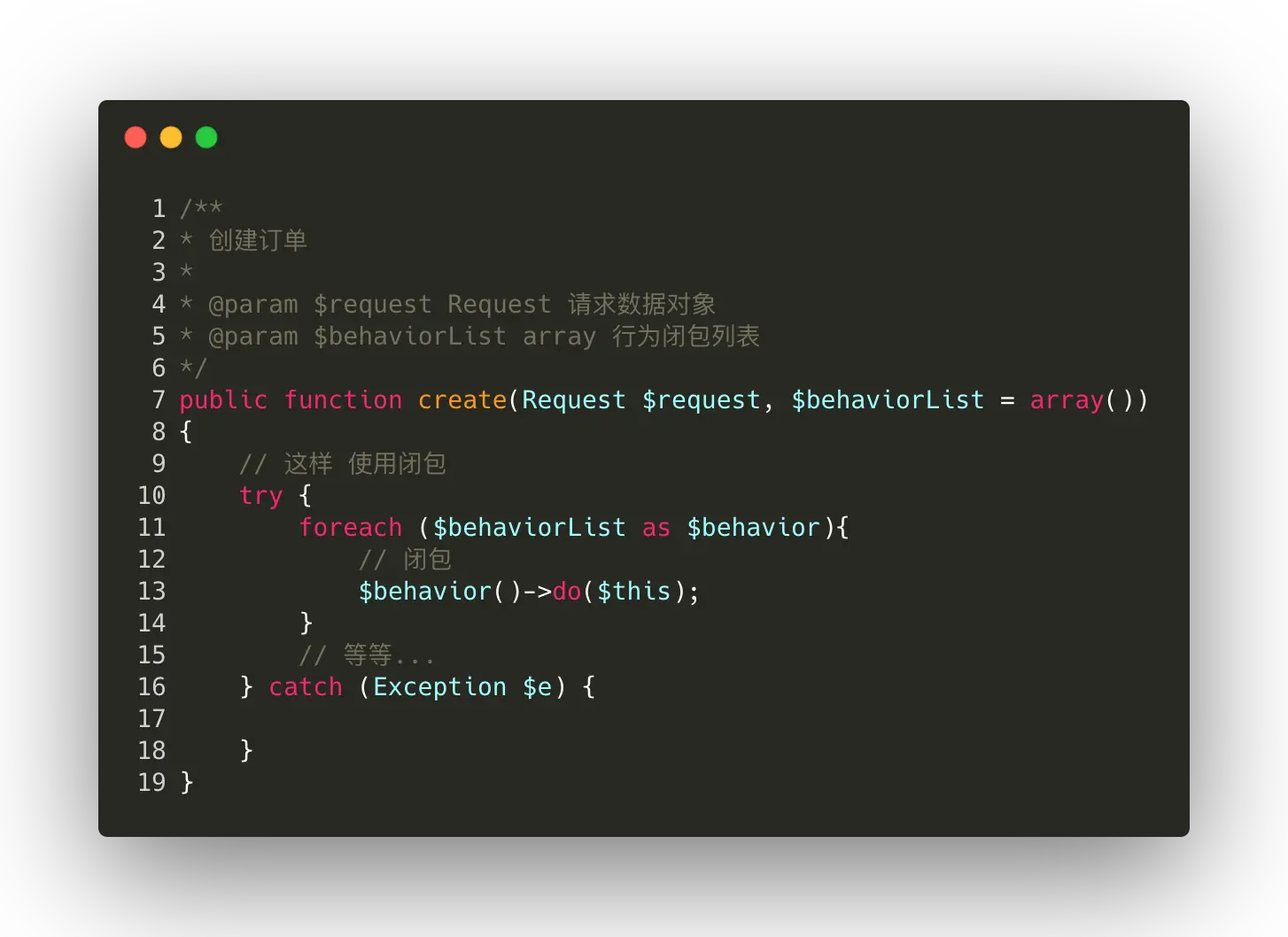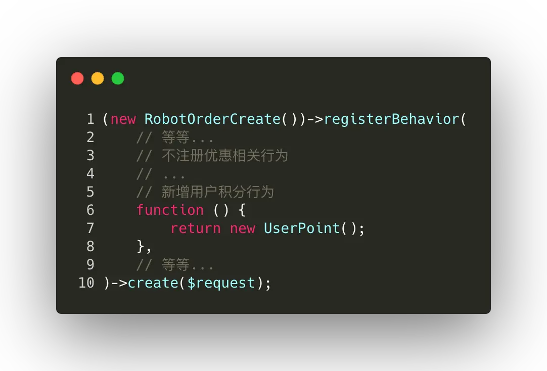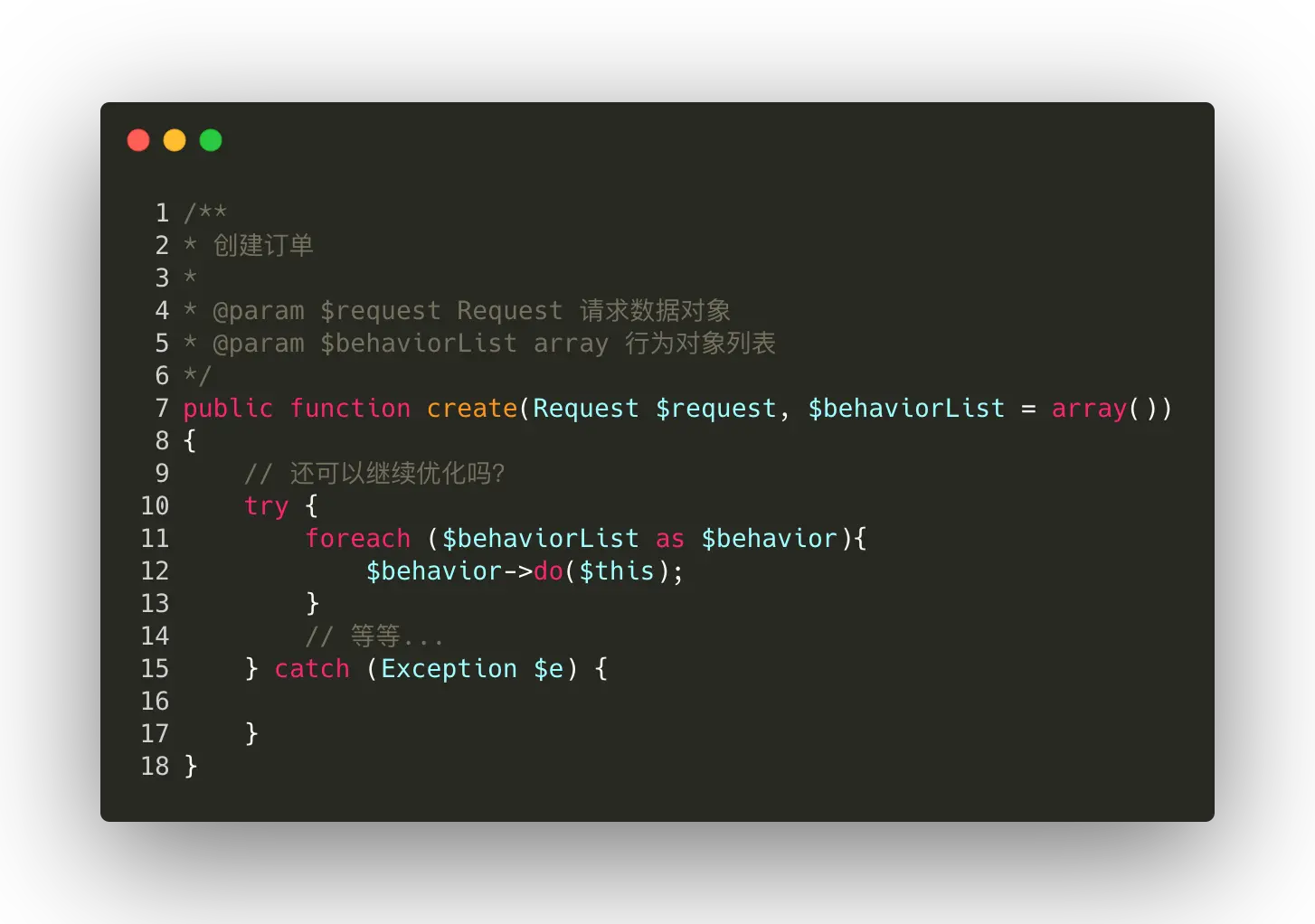 结果:创建订单的逻辑从依赖具体的业务转变为依赖于抽象接口BehaviorOrderCreateInterface