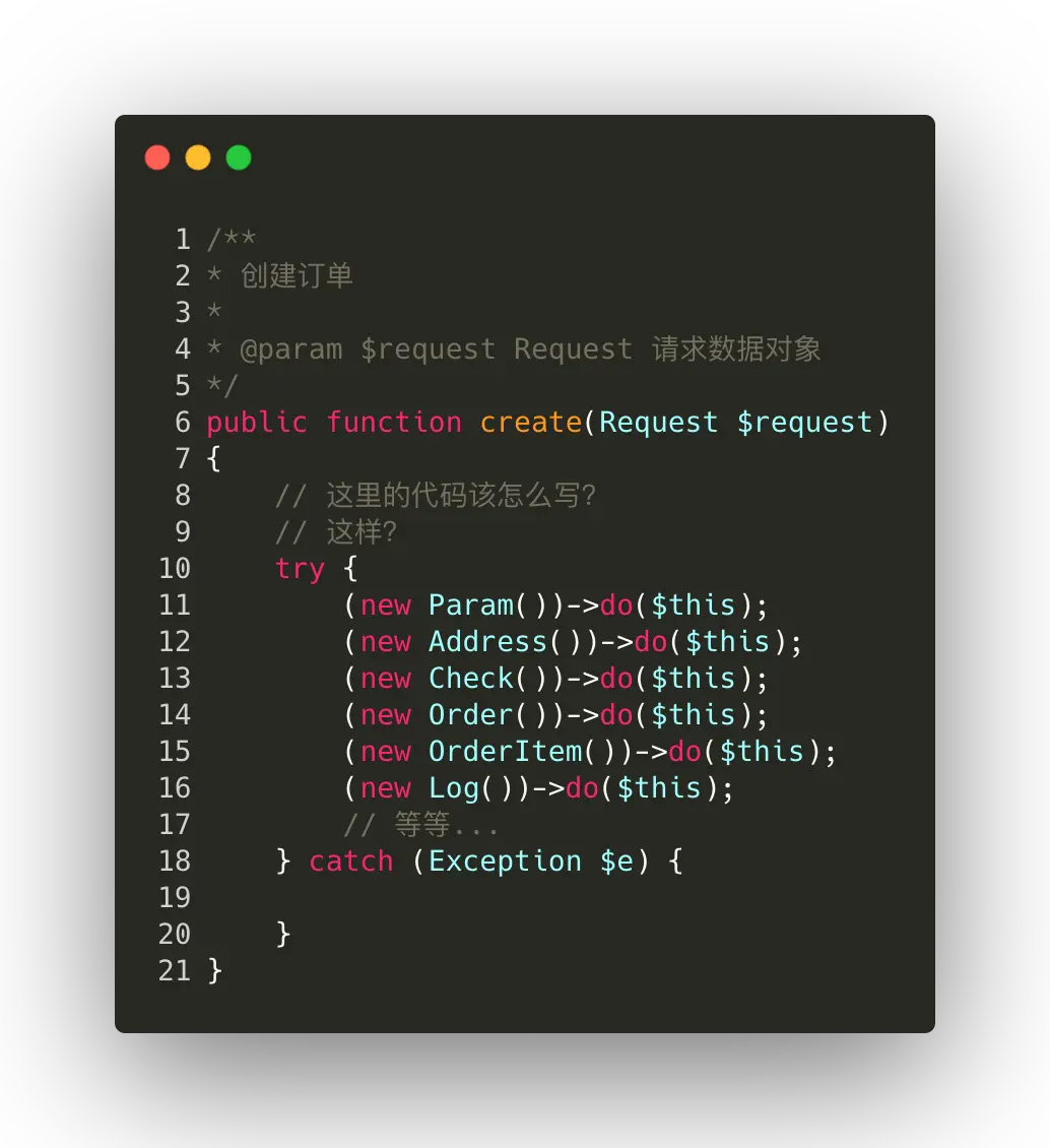 假如“我一个同事”又要新开发一个新的应用,新的应用创建订单的时候又有新的逻辑,比如没有优惠逻辑、新增了增加用户积分的逻辑等等,复用上面的代码,是不是就很简单了。
