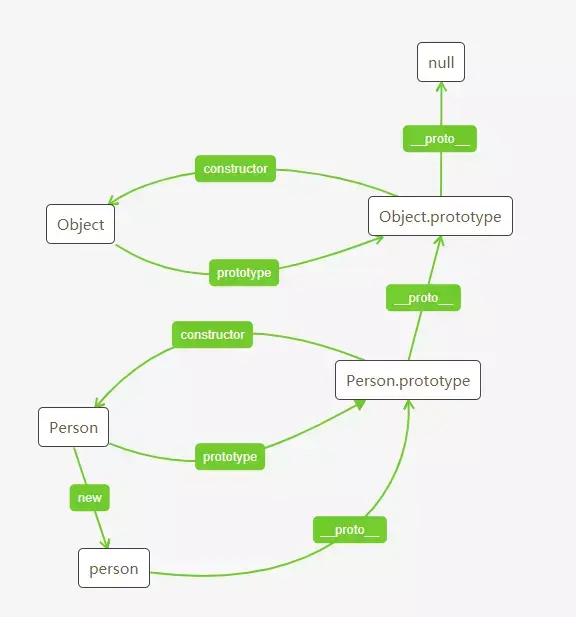 5、处于最顶级的是null,一切原型的最终指向皆归于null。Object.prototype.__proto__=Person.prototype.__proto__.__proto__=person__proto__.__proto__.__proto__=null。当一个实例上的属性在null上找不到,那就是没有这个属性。