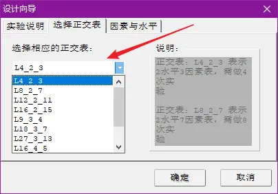 注意:如果没有找到合适的正交表,要在表格中找到多一些的正交表选用即可,只需要把多余的内容删除。