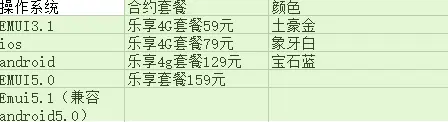 | EMUI3.1 | 乐享4G套餐59元 | 土豪金 |