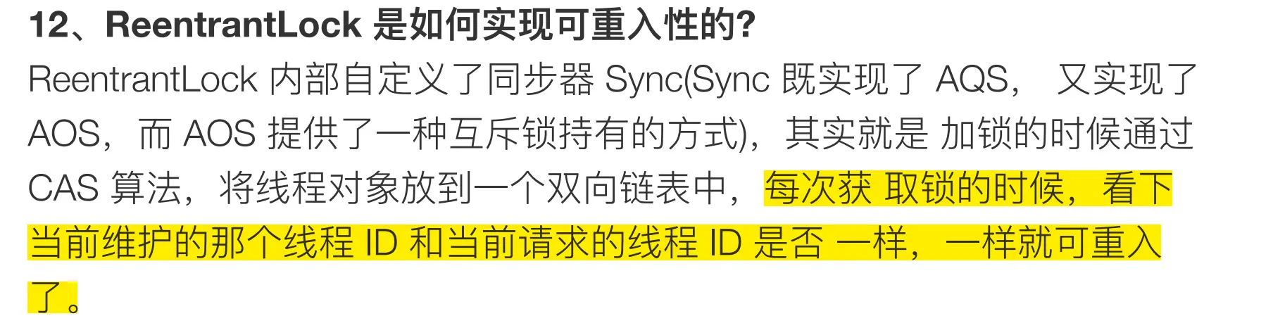 先是锁可重入。这个是针对同一个线程。