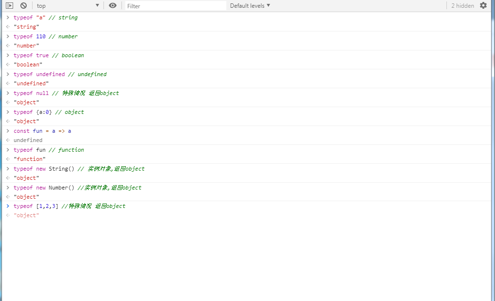 2、typeof 用于判断一个变量的类型,返回类型为字符串