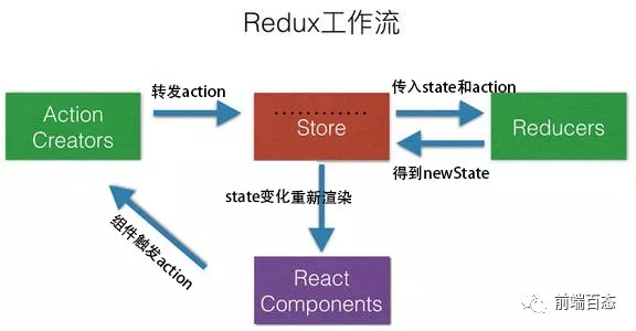 - 仓库不能直接修改,修改只能通过派发器(dispatch)派发一个动作(action)