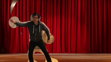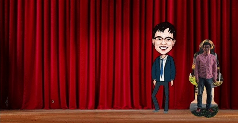 比如,只用右手腕上那一个点,就可以把幕布切开,进入下一个场景: