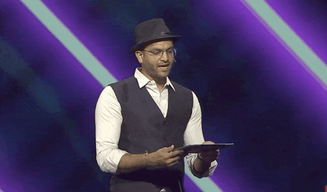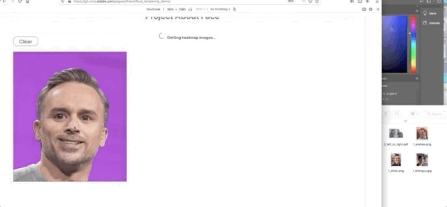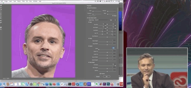 演示的小哥哥,拿着主持人的照片,现场展示了从P图到识别,再到还原的全过程。