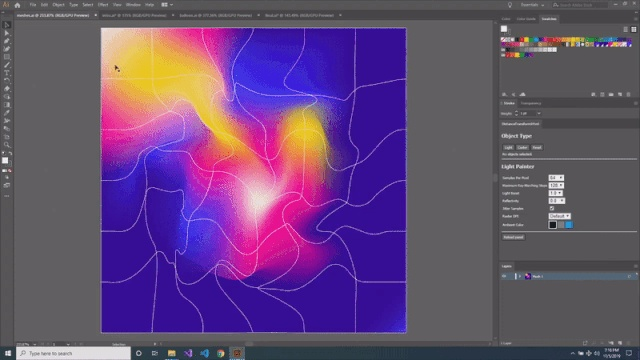 那么,我们画一道波浪线吧。一键往波浪线身后加上黑色渐变,线条就会成为一道缝隙,让来自地底黑暗世界的气息,从缝里喷薄而上:
