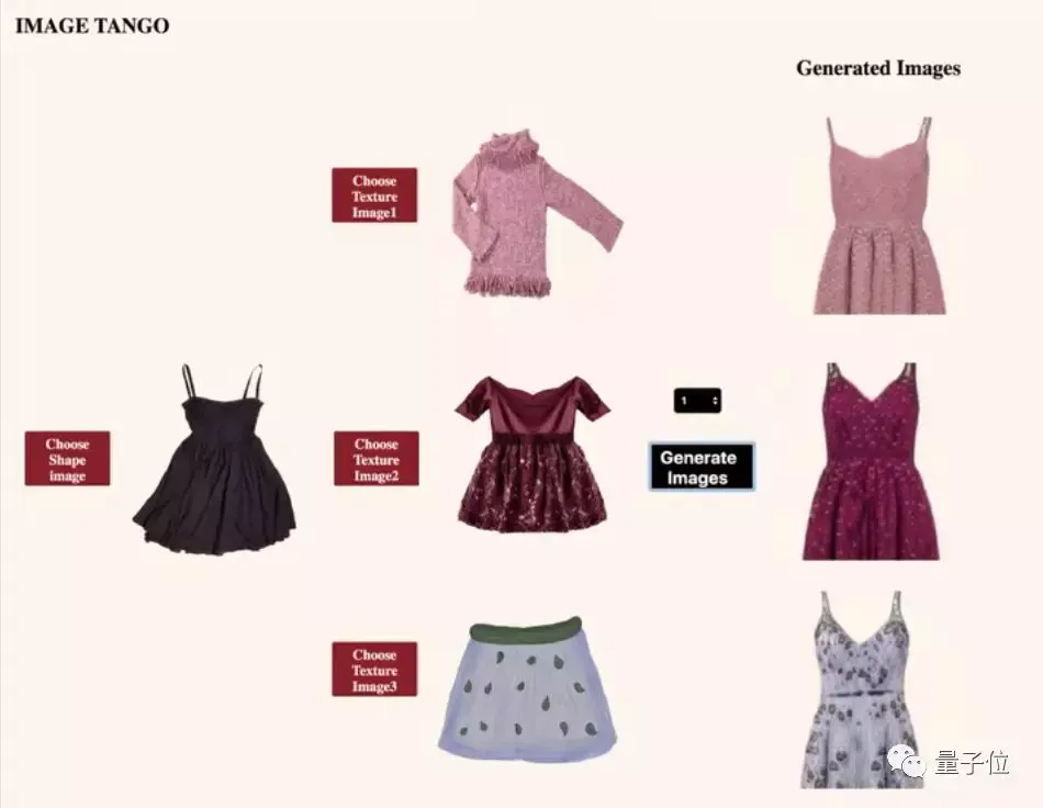 比如,你喜欢这条裙子的剪裁,但又希望它有另一件衣服的花色,就把两件衣服的照片都丢给Image Tango: