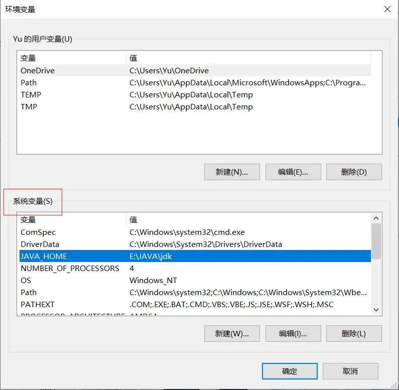 变量值填写jdk的安装目录(本人是E:\JAVA\jdk)作用是为了指向安装路径Eclipse/Netbeans/Tomcat等软件就是通过JAVA_HOME来找到并使用安装好的jdk