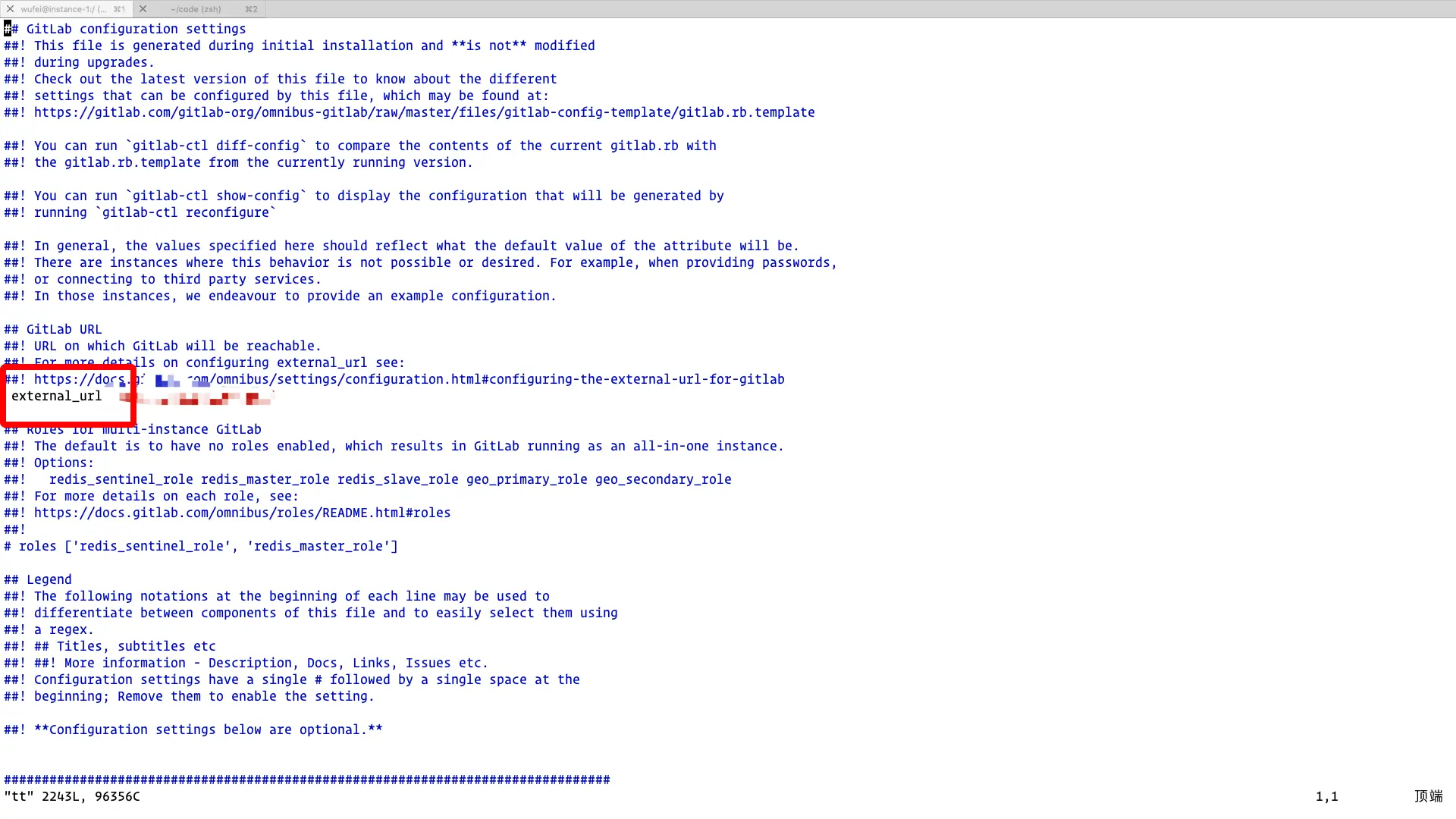 中间也踩了不少坑,有个坑很无语,记录下,在改gitlab配置的时候,手贱,在文件头不小心多敲了个 冒号,