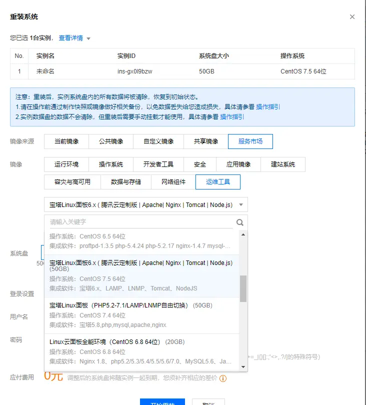 我只用过阿里云和腾讯云,其他厂家的我也没用过也只能给大家一个建议(去宝塔官网看文档)腾讯云服务器的镜像市场是有宝塔面板的 我就选择的下面这个 其实选什么配置 都可以 只要符合你自己的需求 就是最好的
