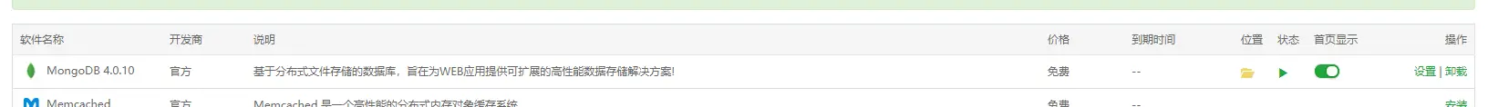 然后点击左侧软件商店 找到 pm2 和 MongoDB 点击安装 就等待所有的东西安装完毕 安装完毕后 记得点击一下首页显示那个按钮 因为这些都是我常用操作