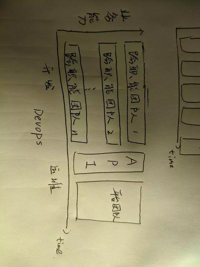 使用了微服务架构体系,团队组织方式需要转变成跨职能团队,即每个团队都有产品专家,策划专家,开发专家,运维专家,他们使用API方式发布他们的功能,而平台使用他们的功能发布产品