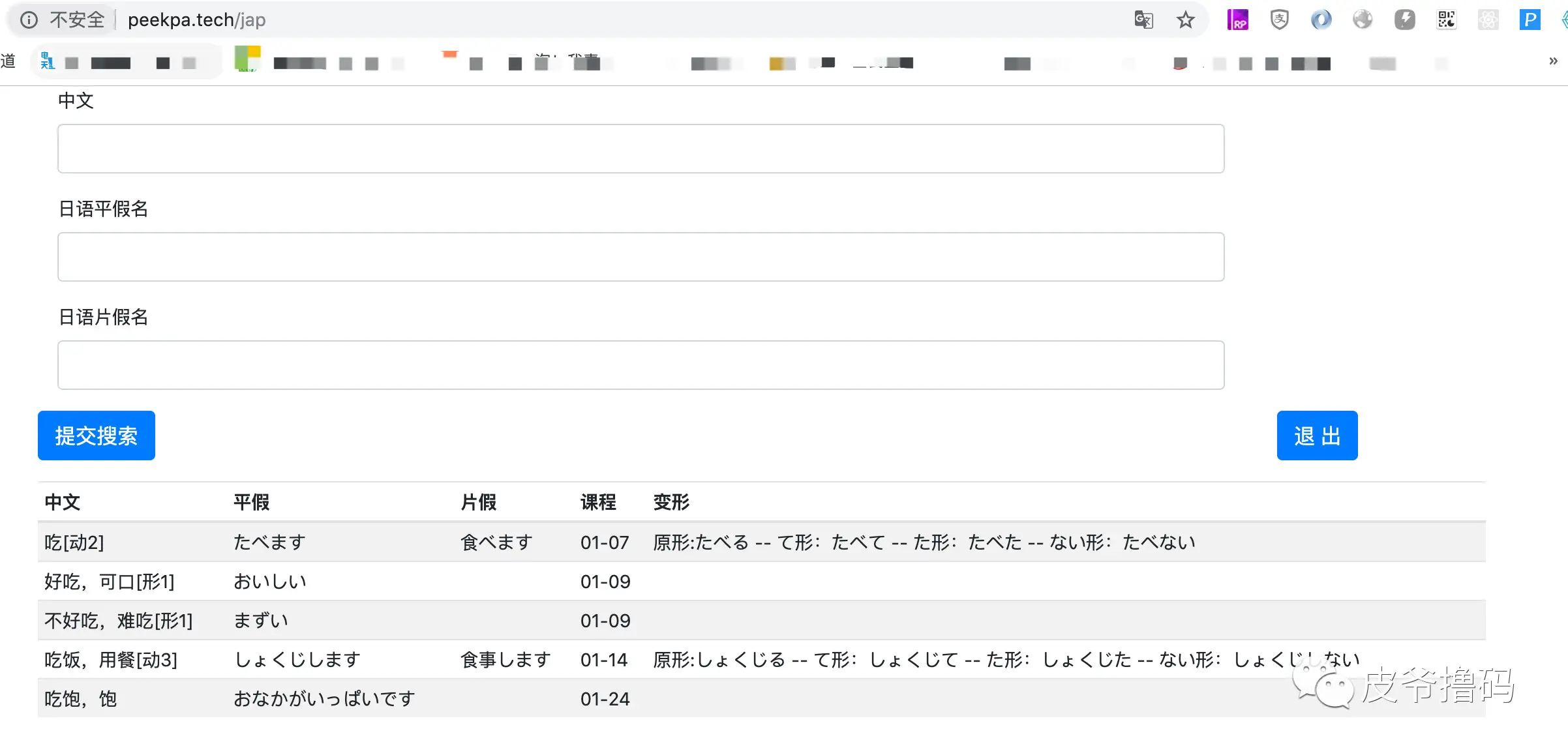 看到,点击提交搜索就能够查询单词,这个其实是一个form的POST提交。在后台那边,处理起来很简单。但是在咱们PeekpaHub里面,我们先写成get请求: