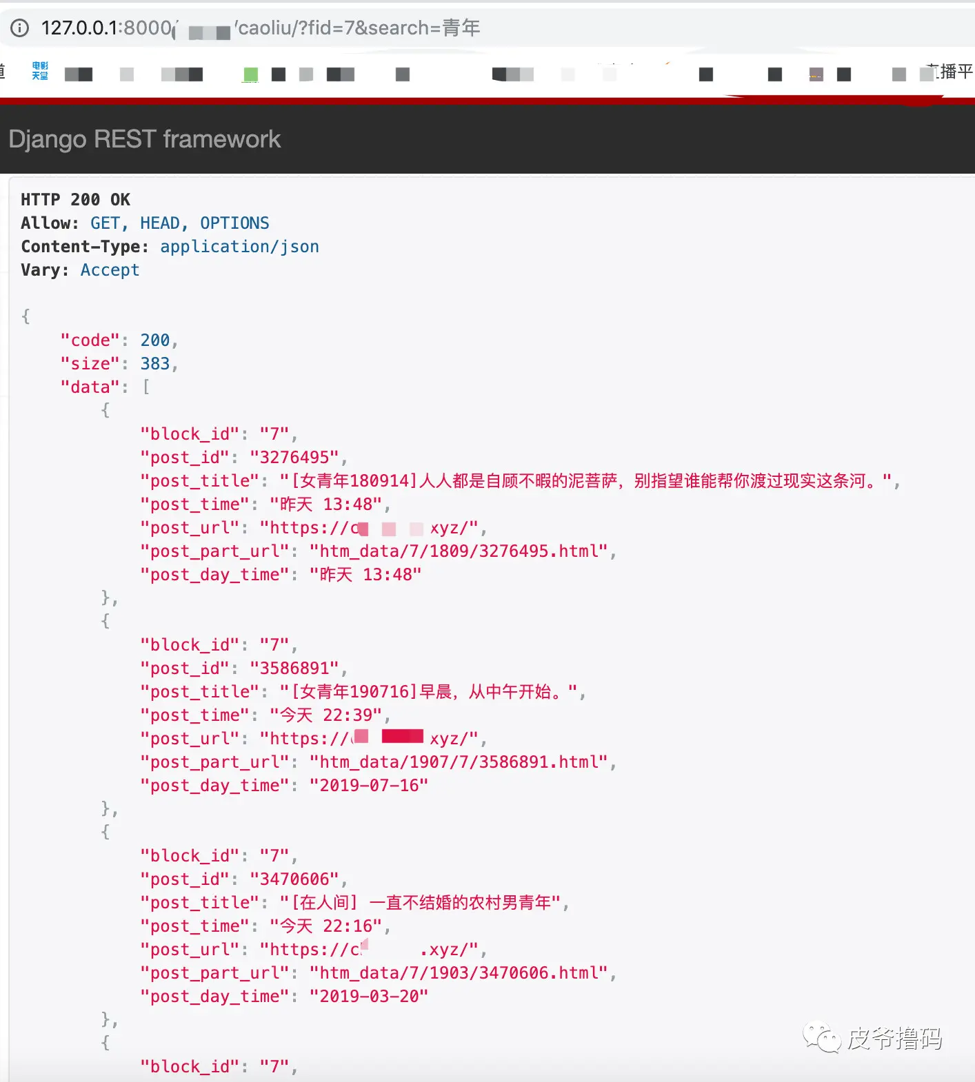 这个还是,第一步就是通过传入板块ID来寻找对应板块的Model;第二步就是传入关键字,因为有些时候关键字可能有大小写之分,这里用 mongoengine.queryset.visitor的Q 来做处理;最后一步,搜索。