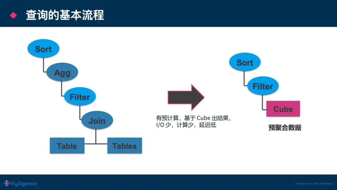 Kylin 的核心思想是预计算,将数据按照指定的维度和指标,预先计算出所有可能的查询结果,利用空间换时间来加速查询模式固定的 OLAP 查询。