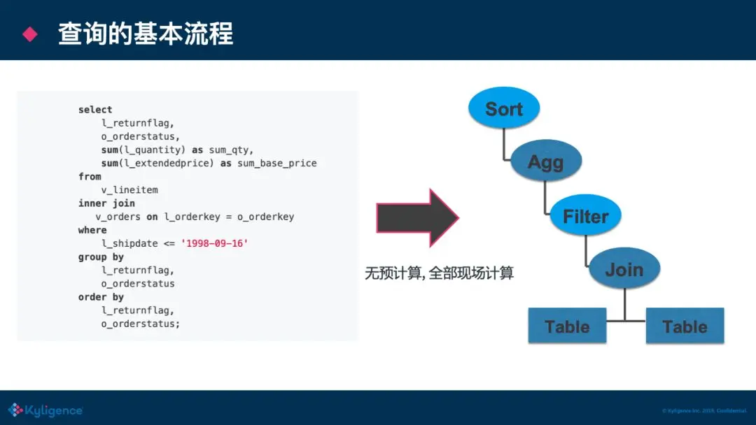 上图是无预计算的场景,全部需要现场计算,Agg 和 Join 因为都会牵涉到 shuffle 操作,故当数据量很大的时候,性能就会比较差,同时也会占用更多的资源,这也会影响查询的并发。