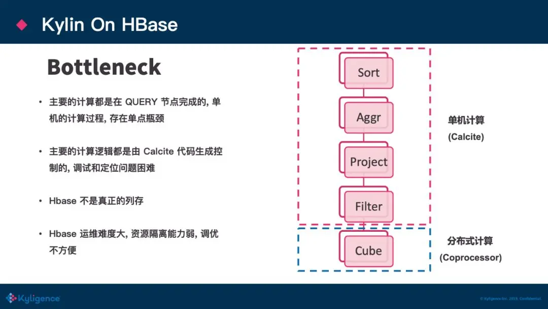 例如 HBase 的运维是出了名的难,一旦 HBase 性能不好,那么可想而知 Kylin 的性能也不会好。
