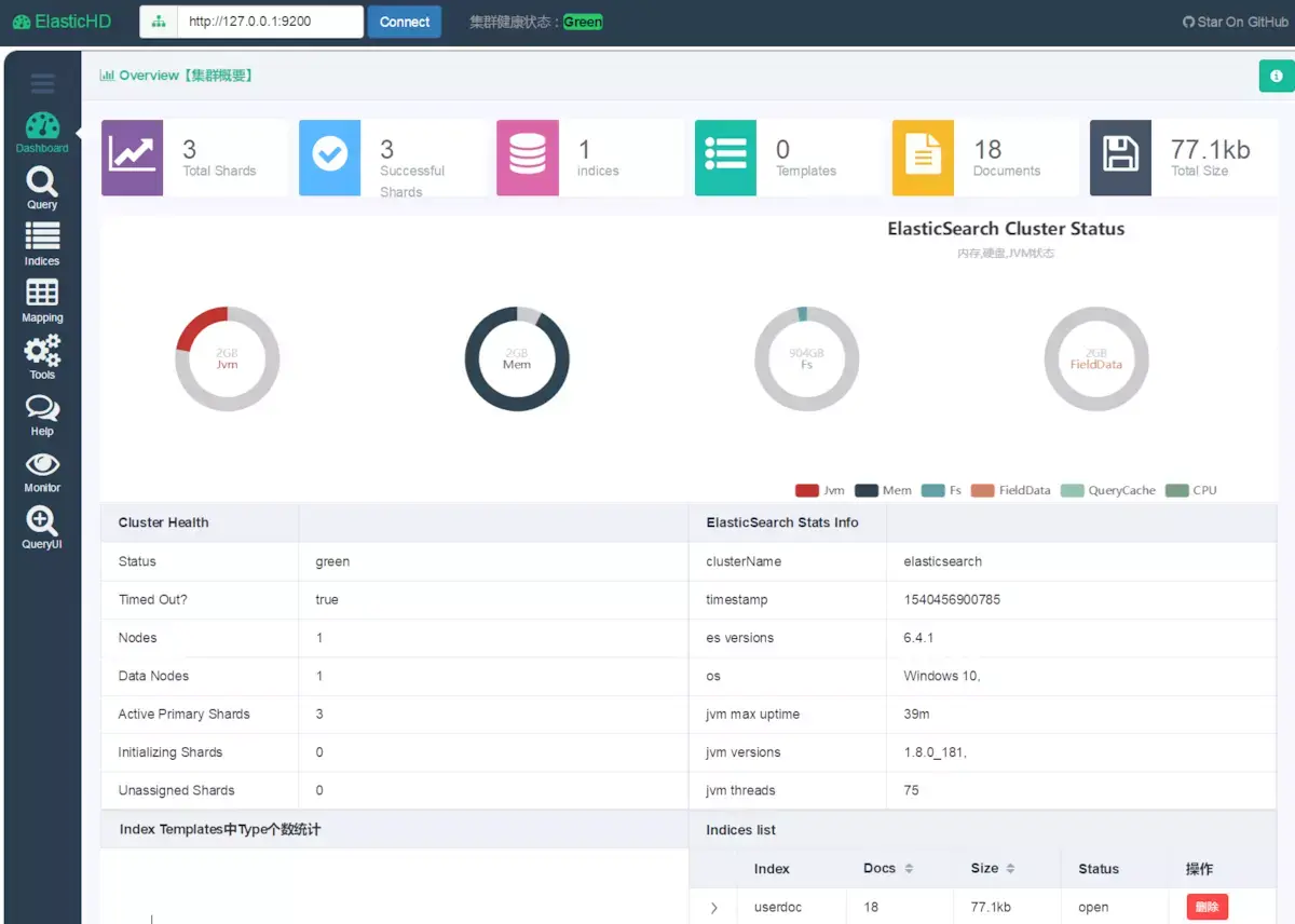 ElasticHD 支持 ES监控、实时搜索,Index template快捷替换修改,索引列表信息查看, SQL converts to DSL工具等,体验下来感觉还是比较强大的!
