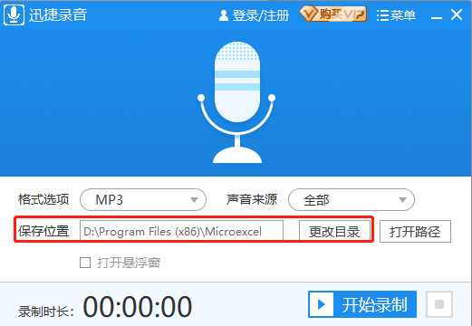 4、然后我们可以为我们之后录制的电脑声音设置好保存路径,可以点击保存位置后面的“更改目录”,改变录制的电脑声音的保存路径,可以在软件自定义的保存位置找到文件的也可以不改变文件的保存位置