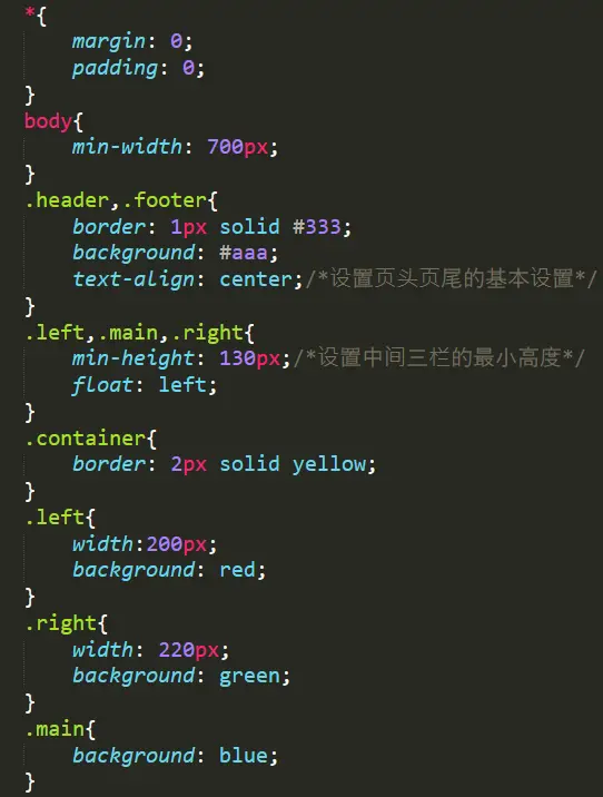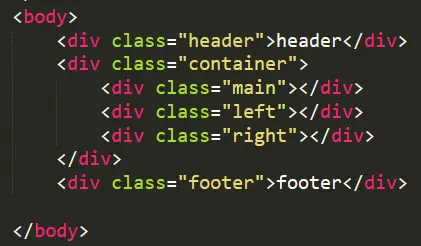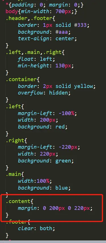 由于网页中需要优先对中间栏进行渲染,所以在html布局中,需要将main(主体部分)写在最前面