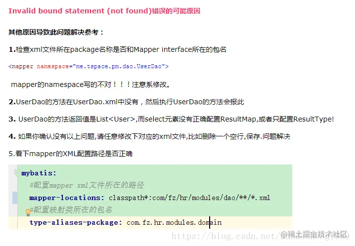 org.apache.ibatis.binding.BindingException: Invalid bound statement (not found)问题,即在mybatis中dao接口与mapper配置文件在做映射绑定的时候出现问题,简单说,就是接口与xml要么是找不到,要么是找到了却匹配不到。