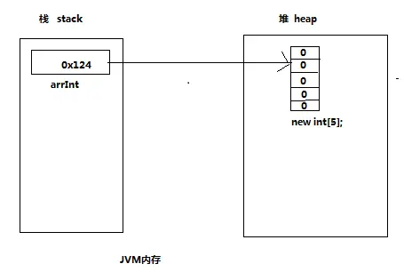 - 解释:生成了两块内存空间,一块存在栈区的arrInt,另一块存在堆区的new int[5];