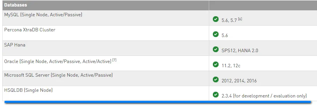 Hybris支持下列的DB: