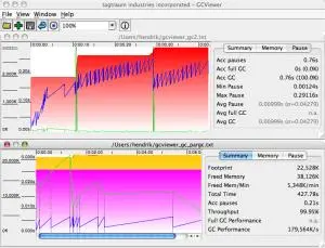 GC查看器的截图GC Viewer可以免费下载,并且开源。可用来可视化JVM的数据(使用vmflags -verbose:gc和-Xloggc:配置)GC Viewer可用于计算与垃圾回收相关的性能指标,包括吞吐量,累积暂停,最长暂停等。当通过更改生成大小或设置初始堆大小来调整应用程序的垃圾回收时,这非常有用。