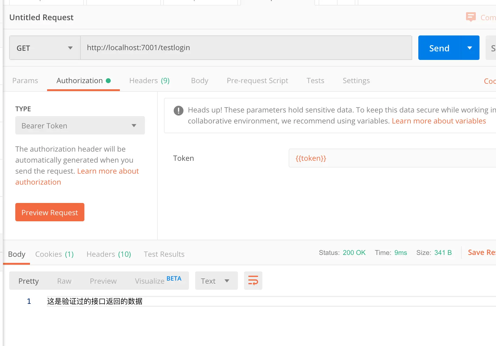 之后进行测试,依然可以得到与上述自己编写同样的效果;这里的koa-jwt就是简化了我们的代码,实现了与自己实现的中间件verify相同的功能
