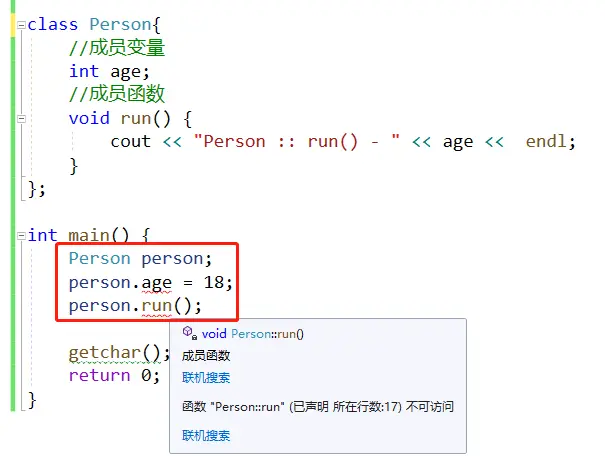 如果将class中的成员变量,成员函数访问权限修改为public,则不会报错