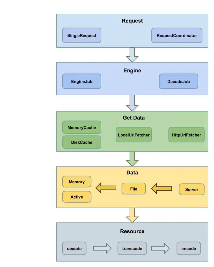 request,首先获取图片宽高,获取成功后调用engine.load,load先从内存缓存中获取Resources。 - 如果