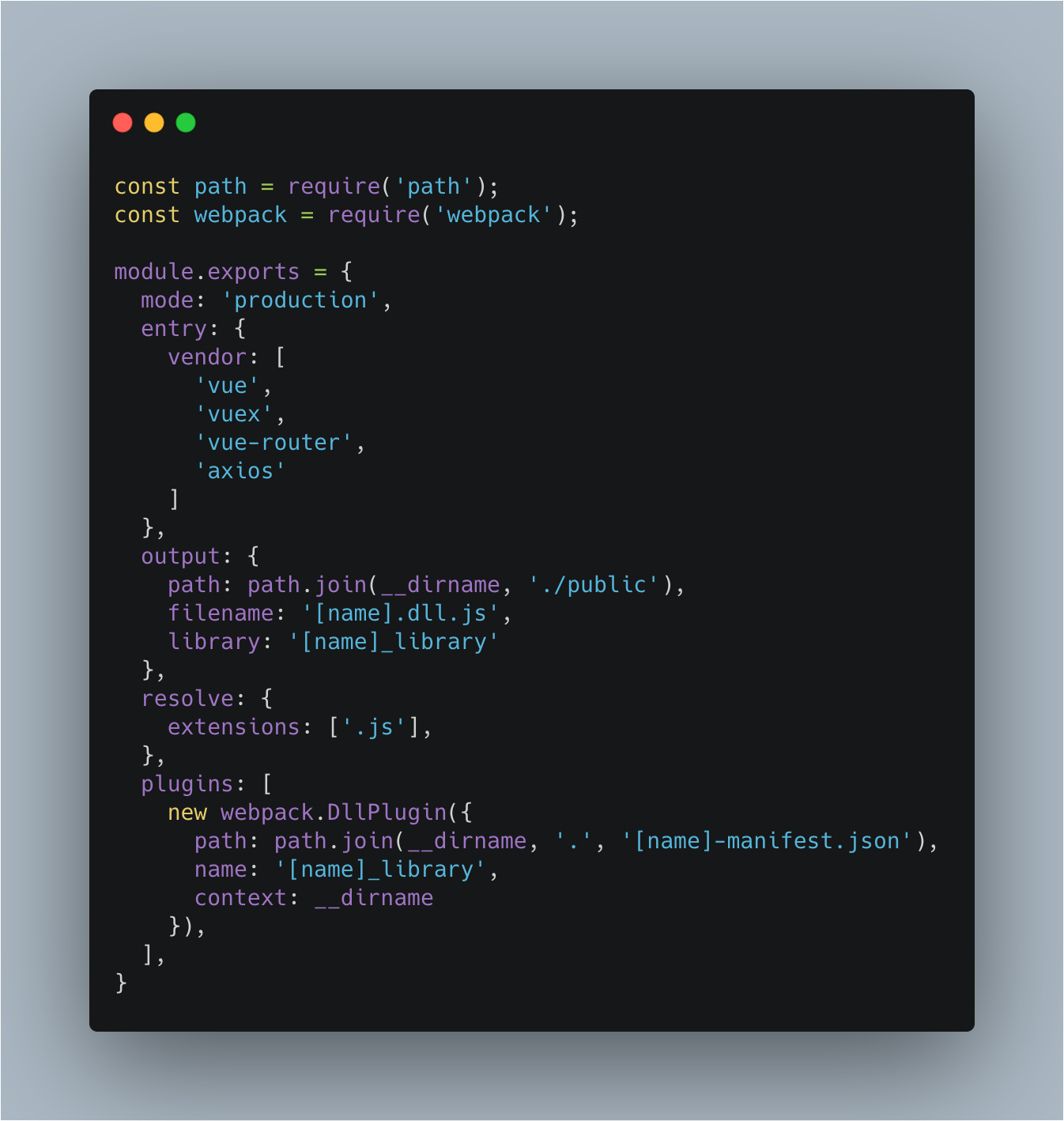在开发环境安装webpack webpack-cli,然后新建weback.config.dll.js,内容如下