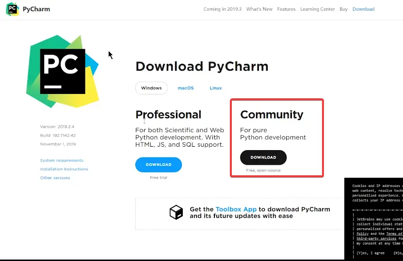 1、进入 PyCharm 的官网,点击右上角的 Download,之后,选择 Community 版本。