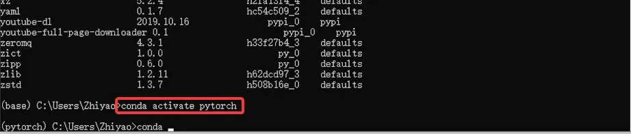 1、在开始菜单处,打开 Anaconda Prompt,输入指令 conda activate pytorch, 进入 conda 环境中的 pytorch 环境。