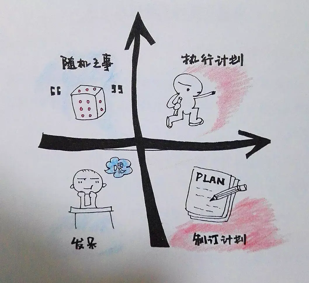 第一象限:执行计划;第二象限:随机之事;第三象限:发呆;第四象限:制定计划