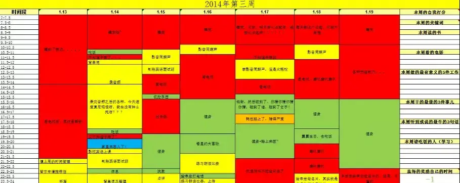 当然,你不必每半个小时就记录一下时间,只需要每晚睡前花5-10分钟记录即可。如果想不起来做了什么就果断的标记为浪费的时间,因为如果你真的做了有意义的事情,你肯定不会忘记。能让你忘记的事情基本都是一些无意义的事情,比如刷微博,看网页,这类时间就果断标记成红色。