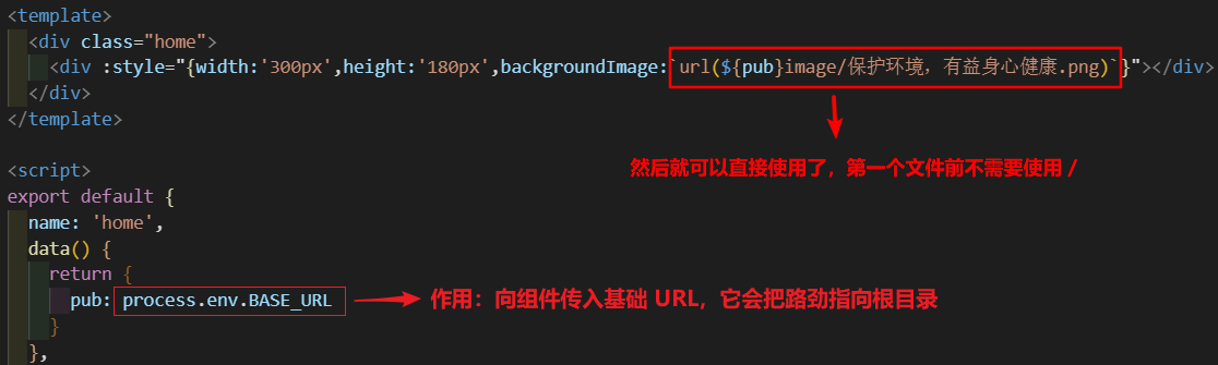 在初次使用vue的时候,对一个div设置背景图片的时候,傻傻的使用了路劲设置的方式,发现不起作用:
