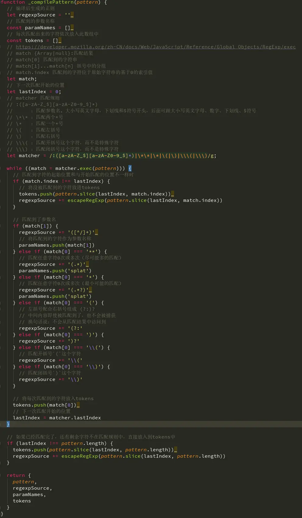 _compilePattern函数,真正的解析函数。