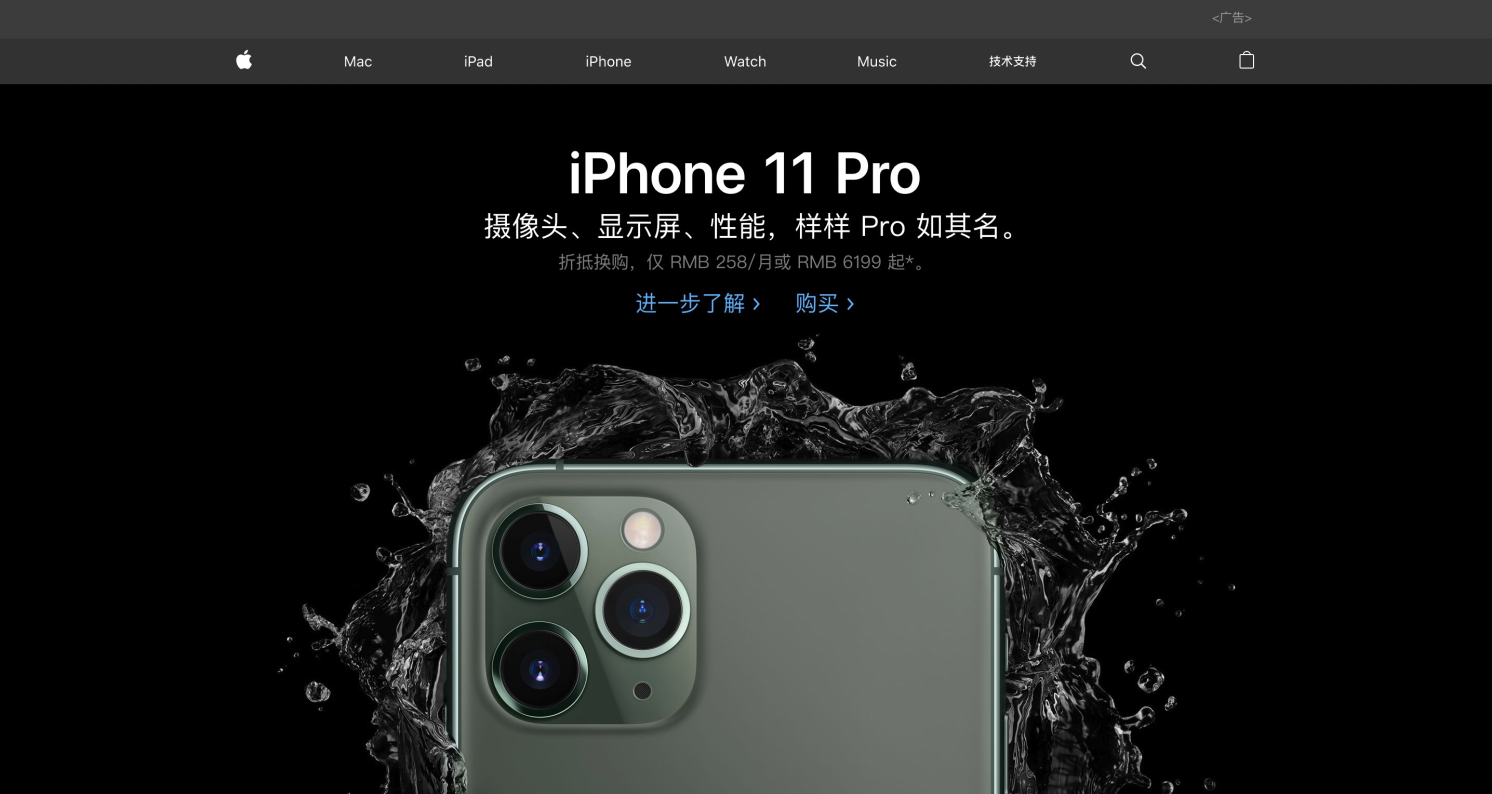 - 在首页,就把当季推荐款推荐给你 —— iPhone 11 pro,并且只有这一款;
