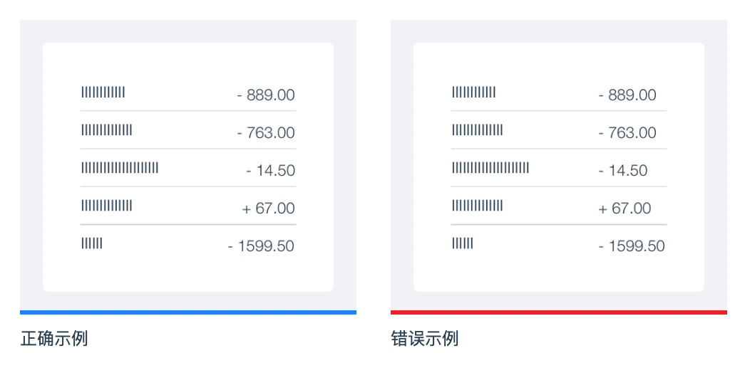 - 金额数字对齐 —— 相同有效位数右对齐:快速对比数值大小