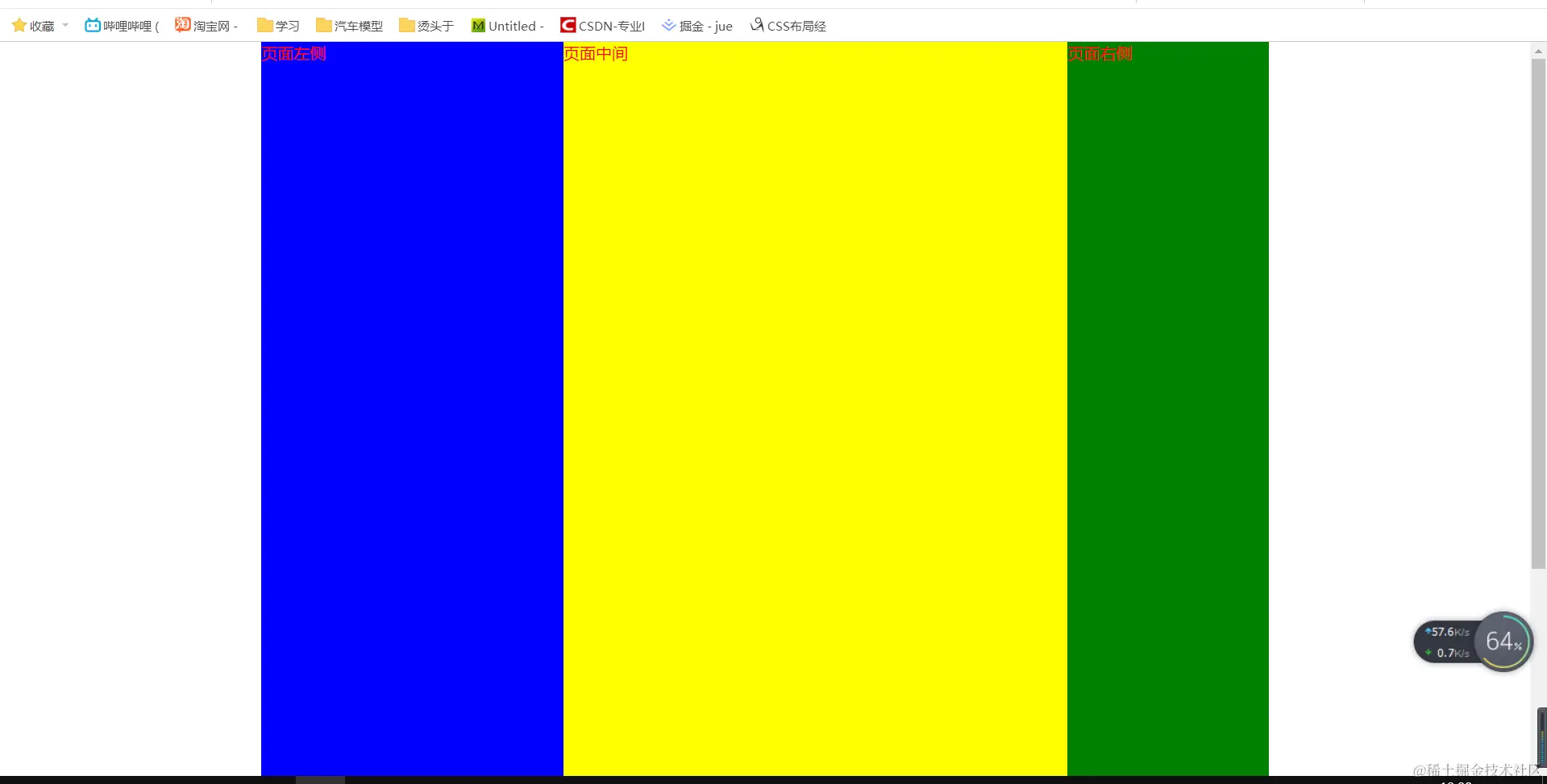 三个盒子宽度和等于外部盒子宽度,都使用float属性实现三盒子同一行,如果有超出宽度会把盒子挤到下一行