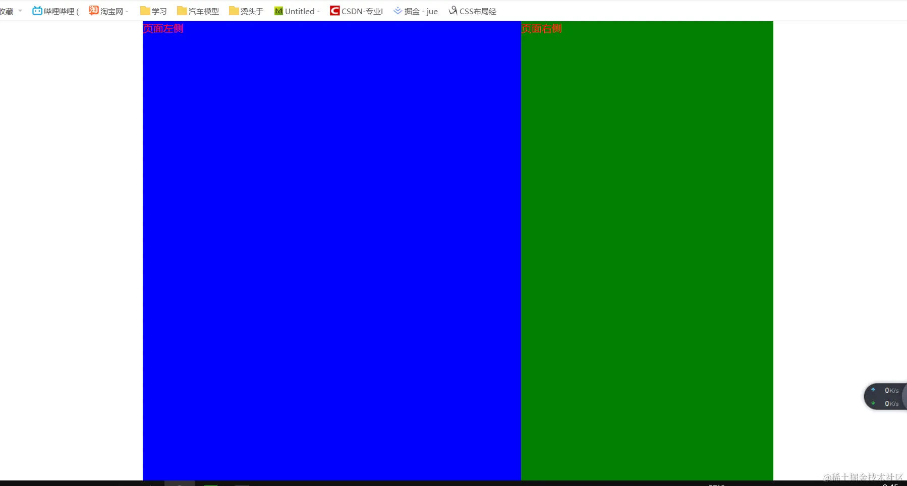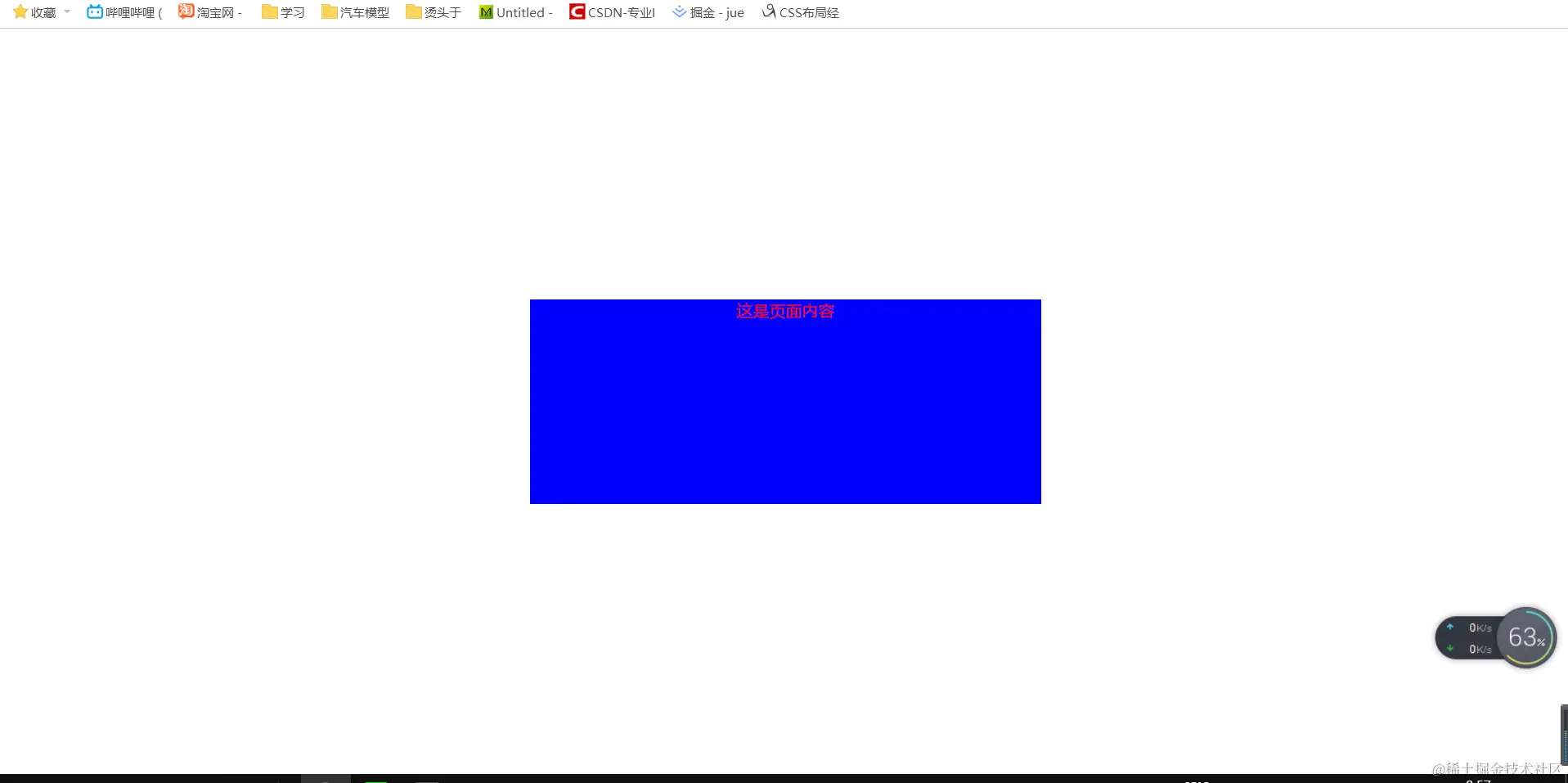 但是这个效果其实有问题,真相是是红色盒子将蓝色盒子覆盖住,填充内容之后就会有问题(上面显示缺一行),解决方法如下: